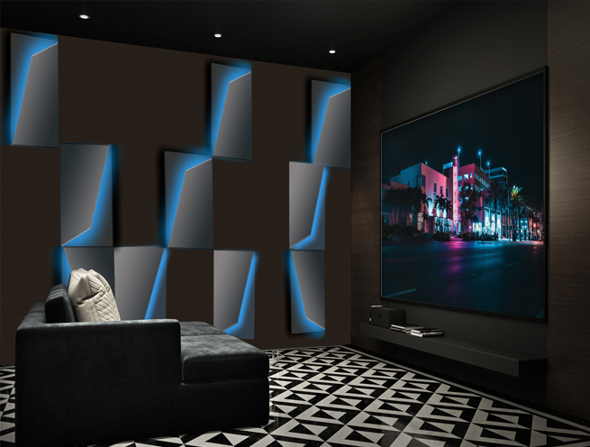 Epix Acoustic Wall Panels are design forward structures created to diffuse and clarify sound in your entertainment environments. Innovative design & LED back lighting effects are the designers choice for incorporating form and function.