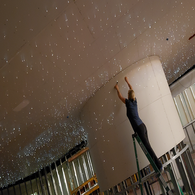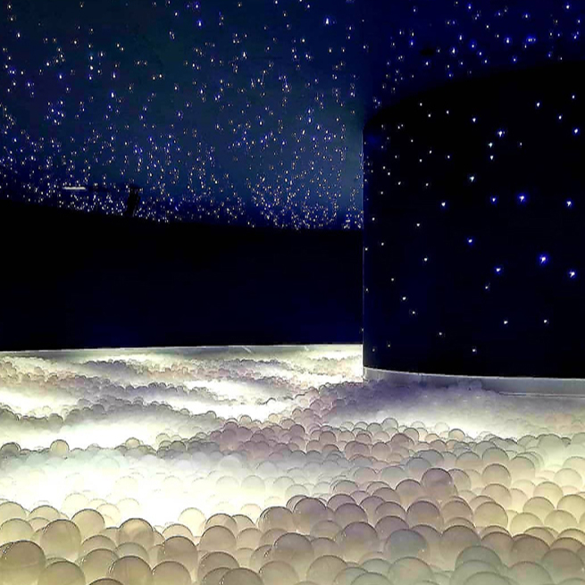 This project falls under one of the biggest and most labor intensive projects to date for the EpiXsky Team. We were contacted by the CEO of the Color Factory, a pop-up museum with only one of them turning into a permanent location, and that is in New York. They have had 2 other locations, one in San Francisco and now one in Houston Tx. Each location features a Ball Pit of some kind. They decided to take the already amazing design to another level. They partnered with NASA on this one, to create the feel of walking on the moon amongst the stars above. The EpiXart team worked hand in hand with the Dry-wall crew, installing over 9000 Fiber Optic RGB color changing stars. This project was over the top gorgeous and The Color Factory was sold out every single day as this Ball Pit was a truly one of a kind attraction. Everything is bigger in TX , and the Color Factory proves it!
