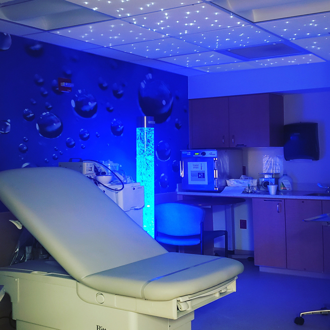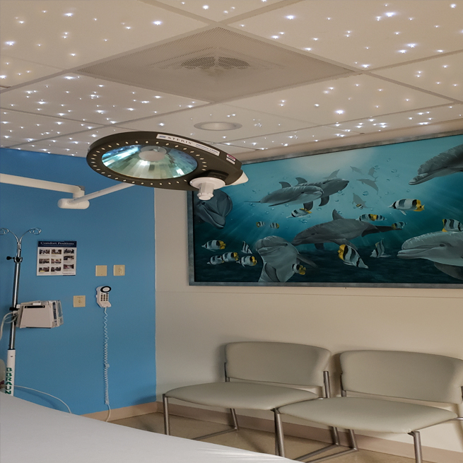 Mease Baycare Children's Hospital designers asked Epixsky to help make their rooms calming and inviting. We used our ALL Star™ white panels to keep a bright feel to the room while creating a subtle twinkle to play off the sea turtle mural as being underwater and the sun shining off rippling water. Epixsky provides state of the art star panels, for children's treatment rooms in over 4 locations. Creating the best experience a child can have when faced with scary hospitals. Making a difference is what drives Epixsky to be the best we can be.